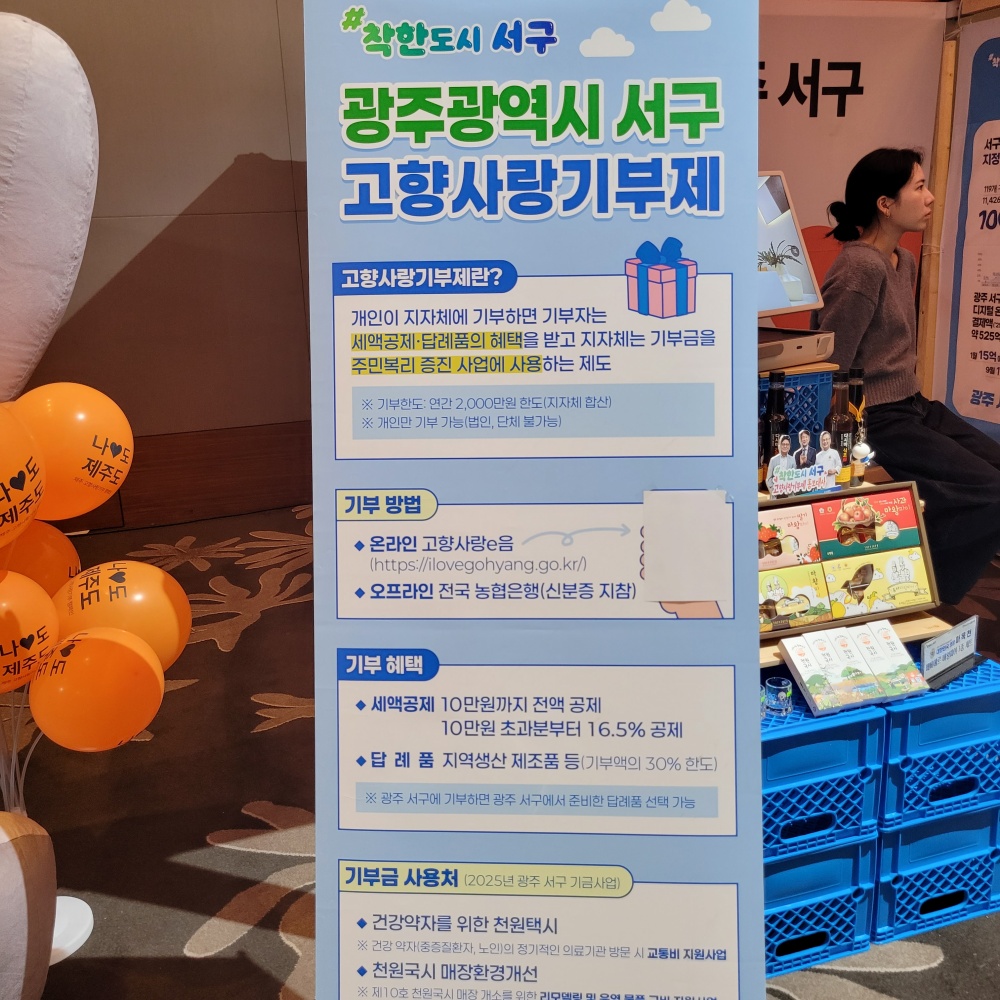 고향사랑 기부제는 지역 발전을 위한 기부금을 내면 연말 정산 시 소득 공제 100%로 받을 수 있습니다. (10만원)