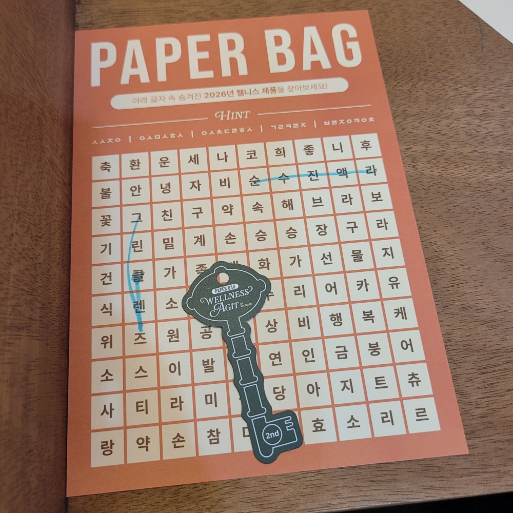 벽에 붙어있는 포스터를 보고 웰니스를 제품명을 찾아야 합니다.
