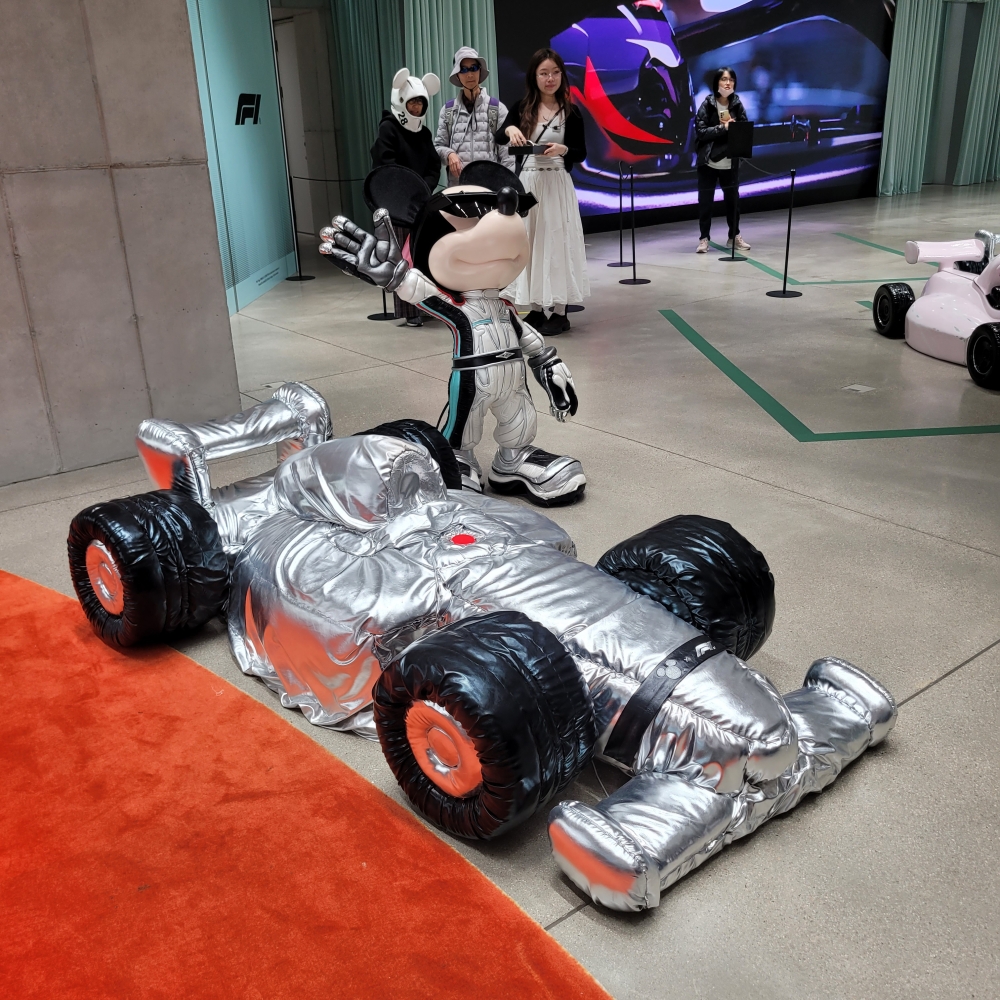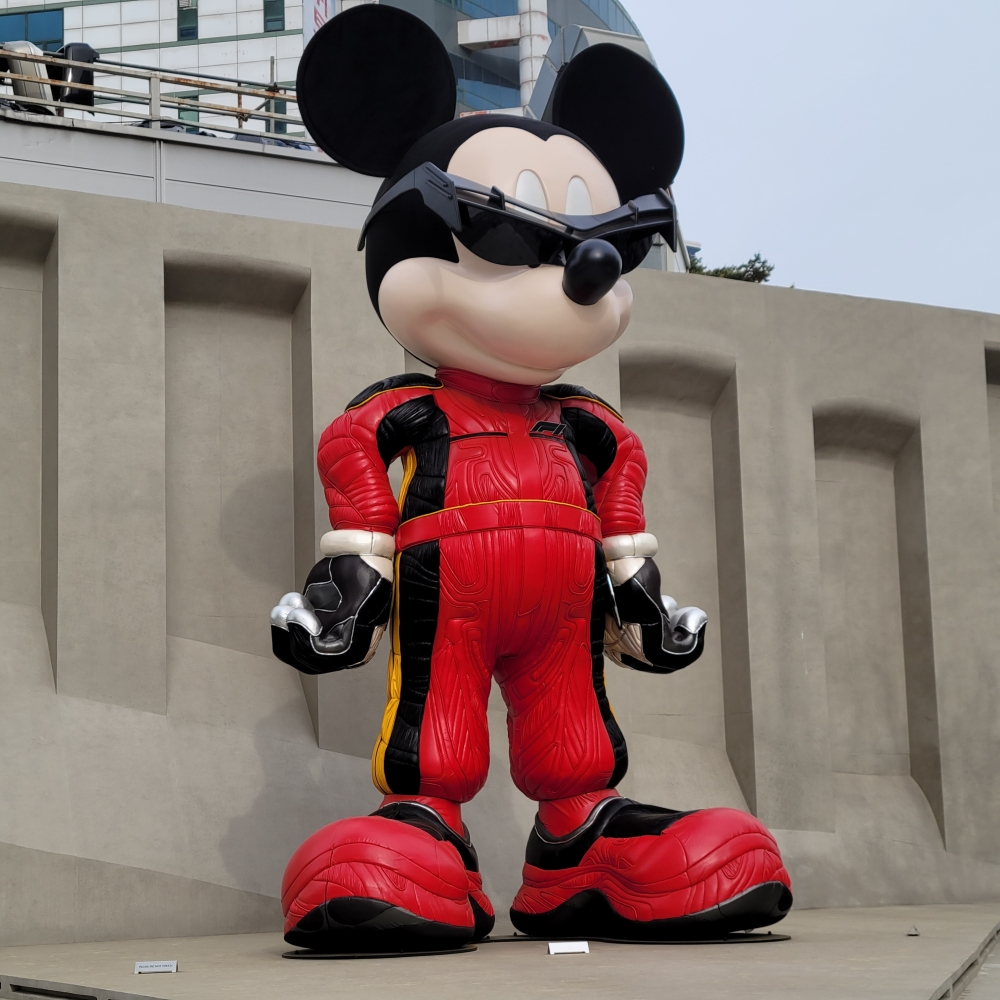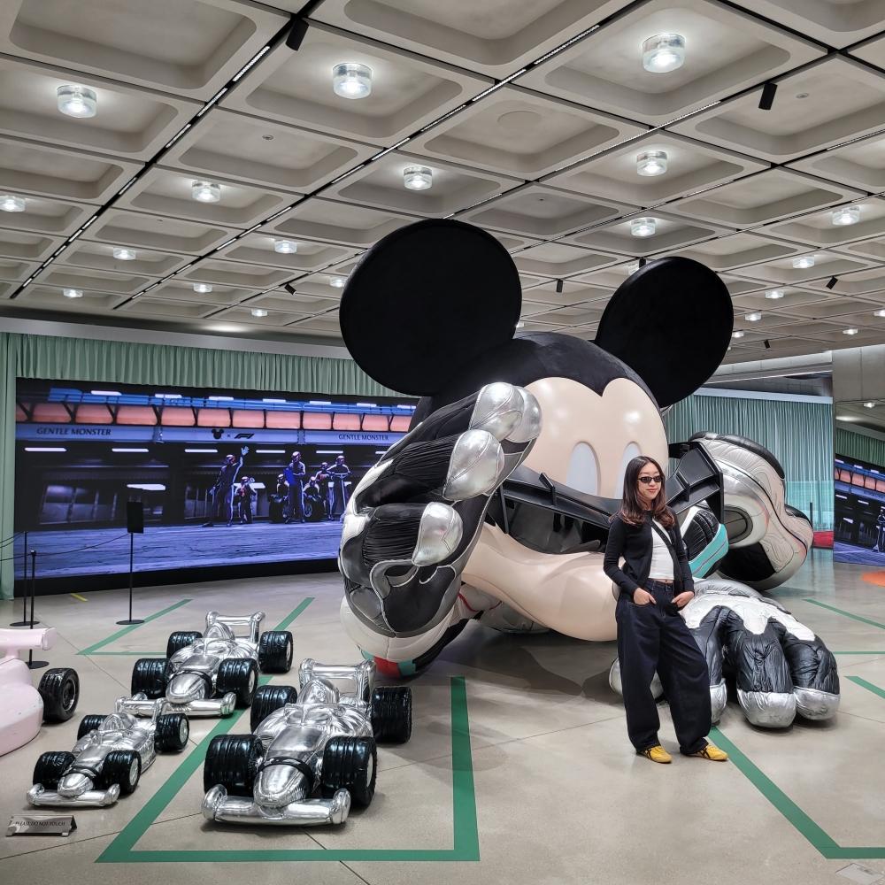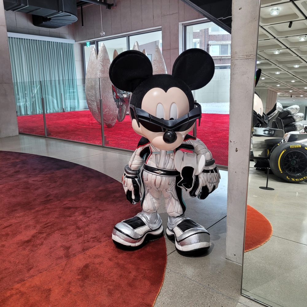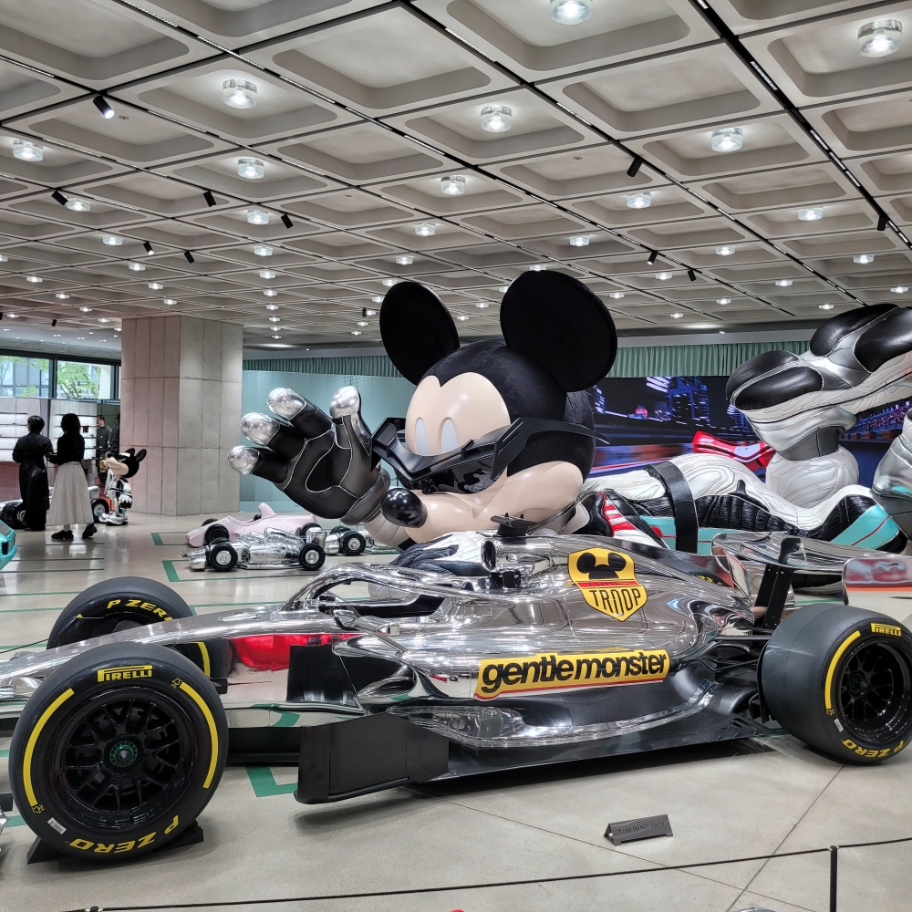 1층에 들어서면 현재 진행 중인 디즈니 미키 마우스와 F1의 협업 팝업이 눈에 들어옵니다.