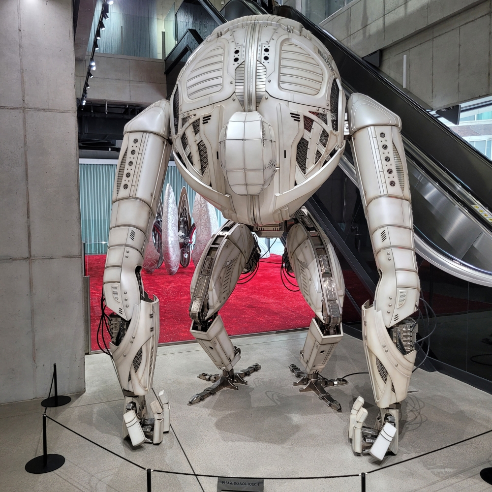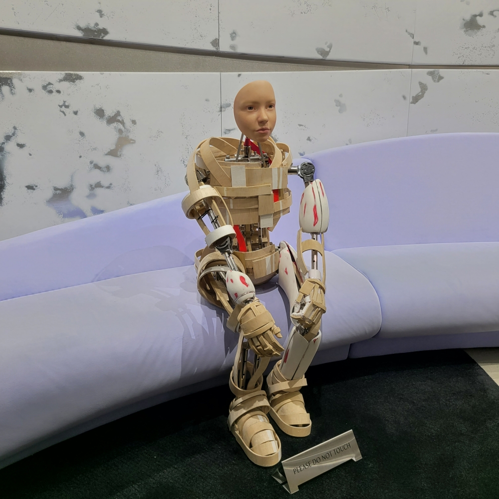2층으로 올라가는 에스컬레이터 앞에는 거대한 로봇이 서 있습니다.
