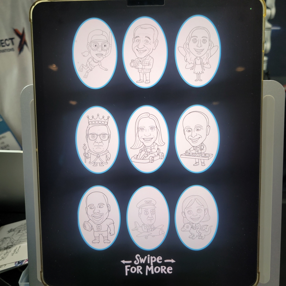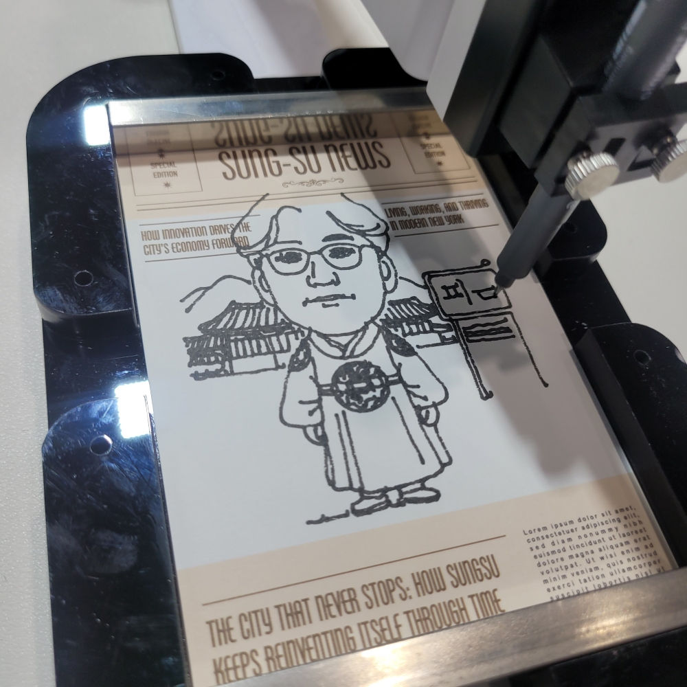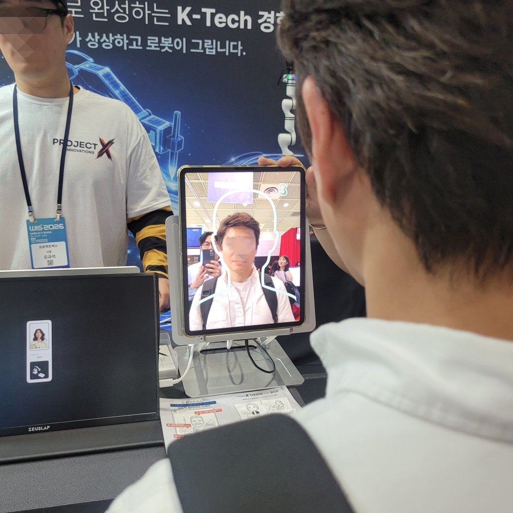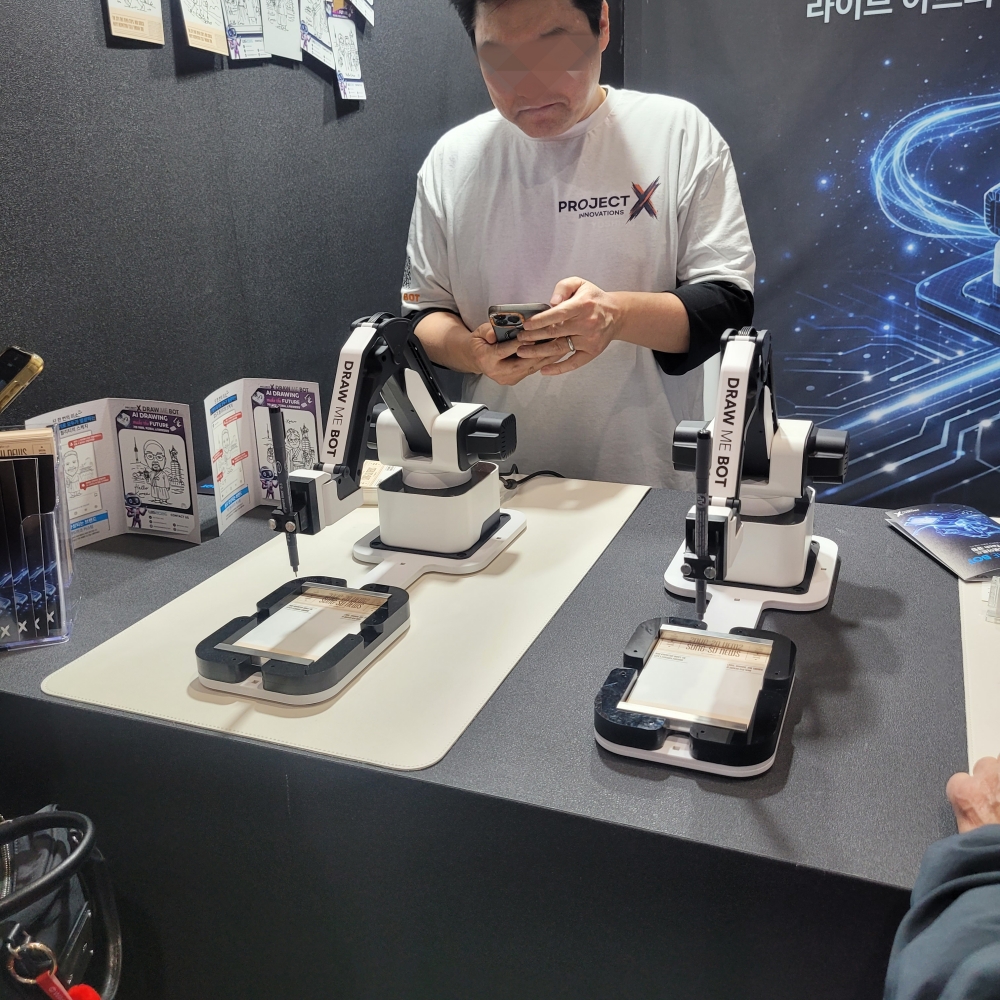 캐리커처를 그려주는 로봇도 흥미로웠습니다. 태블릿으로 사진을 찍고 정해진 레이아웃 중 하나를 고르면 로봇이 그대로 그림을 그려줍니다.