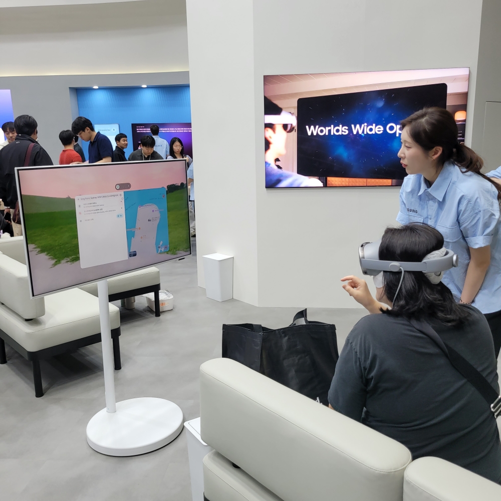 삼성전자가 만든 이 모니터는 부스 전면에서 관람객들을 모으는 용도로 활용되고 있었습니다.